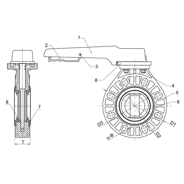 Valvola a farfalla con maniglia PPH D71X-10S DN40-200 1-1/2"-8" Norma ANSI