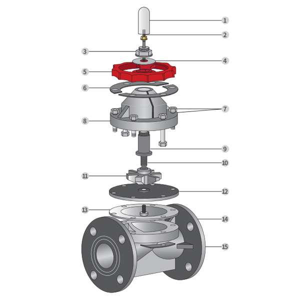Disegno dettagliato del gruppo valvola a membrana