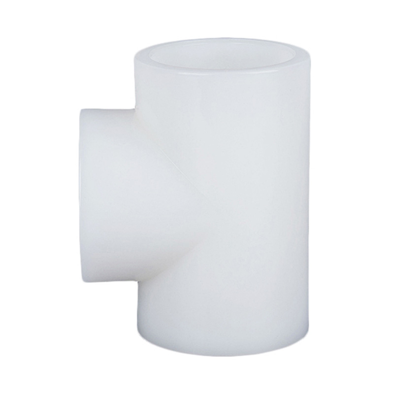 Raccordo per tubi in plastica di forma uguale a T in PVDF bianco a prezzo di fabbrica. Raccordo per tubo dell'acqua DN15-DN100, raccordo a T dritto per drenaggio e servizi igienico-sanitari