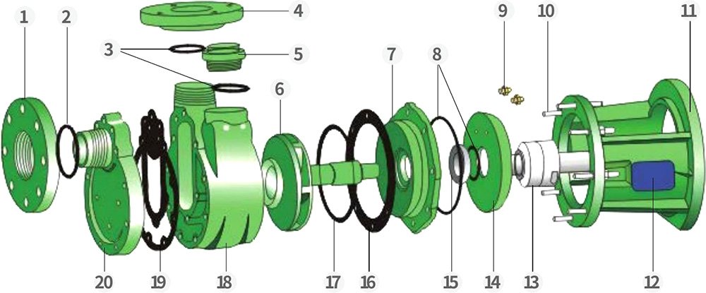La nostra fabbrica è specializzata nella produzione di pompe centrifughe e autoadescanti interamente in plastica resistenti alla corrosione in due materiali: PVDF e FRPP, in quattro serie (FV, FP, FVZ, FPZ). Le pompe PVDF sono adatte per la movimentazione di acidi forti, potenti ossidanti, alogeni, idrocarburi aromatici, composti alifatici e solventi clorurati, con un intervallo di temperature di esercizio compreso tra -40°C e 140°C. Le pompe FRPP sono ideali per alcali forti nonché acidi generici, basi, sali e loro derivati, con un intervallo di temperature di esercizio compreso tra -40°C e 90°C. Le pompe sono generalmente azionate da motori di tipo Y ad alta efficienza energetica. Su richiesta possono essere forniti motori antideflagranti.