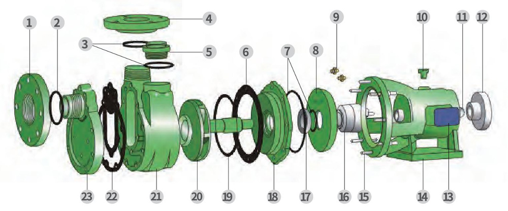 La nostra fabbrica è specializzata nella produzione di pompe centrifughe e autoadescanti interamente in plastica resistenti alla corrosione in due materiali: PVDF e FRPP, in quattro serie (FV, FP, FVZ, FPZ). Le pompe PVDF sono adatte per la movimentazione di acidi forti, potenti ossidanti, alogeni, idrocarburi aromatici, composti alifatici e solventi clorurati, con un intervallo di temperature di esercizio compreso tra -40°C e 140°C. Le pompe FRPP sono ideali per alcali forti nonché acidi generici, basi, sali e loro derivati, con un intervallo di temperature di esercizio compreso tra -40°C e 90°C. Le pompe sono generalmente azionate da motori di tipo Y ad alta efficienza energetica. Su richiesta possono essere forniti motori antideflagranti.