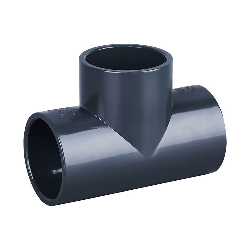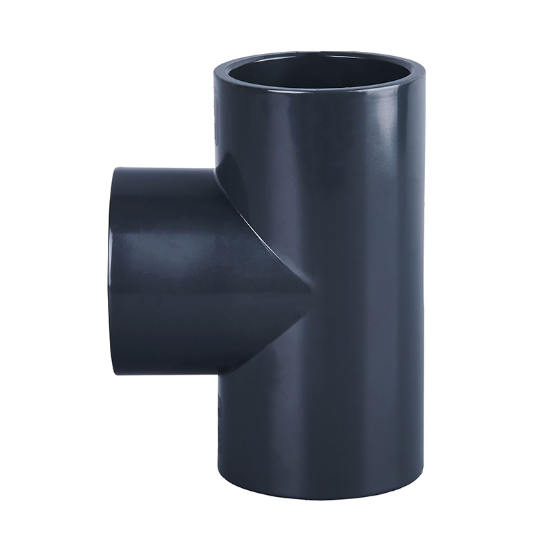 Prezzo di fabbrica Connettore a T in PVC-U grigio scuro di forma uguale Connettore per tubo in plastica DN15-DN600 Connettore per tubo dell'acqua Connettore a T dritto per drenaggio e servizi igienico-sanitari